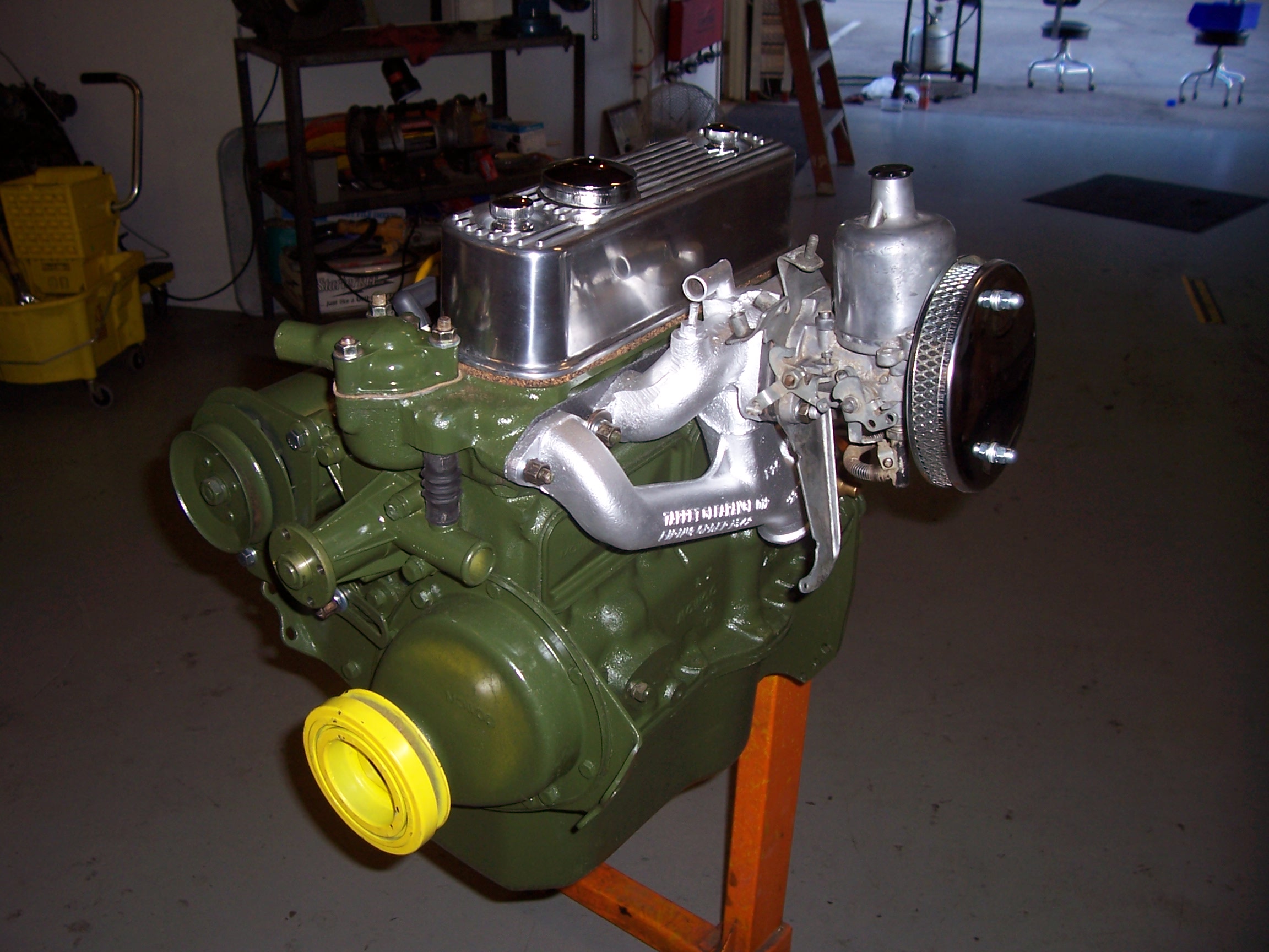 |  | 100_1570 This is the carb and intake/exaust. Dual carbs are supposed to be on this motor. I can't comprehend why someone would put a single on it, but there it is. I have to go with it because of cost issues. | Index Previous Next |  |